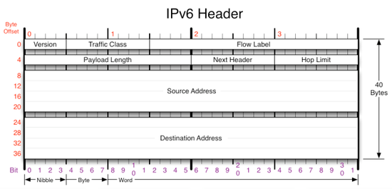 IPv4 방식은 10진법으로 표기하는 반면 IPv6 방식은 1234:5678:9ABC:DE12:3456:789A:BCDE:1234와 같이 16진법으로 표기한다.